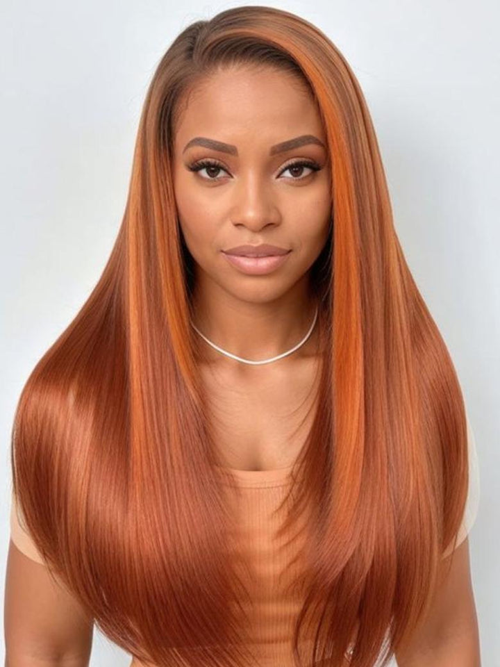 13x4 Pre-Everything™ Lace Frontal Black Cherry & Ginger Brown Perfect Melt Layered Straight Wig