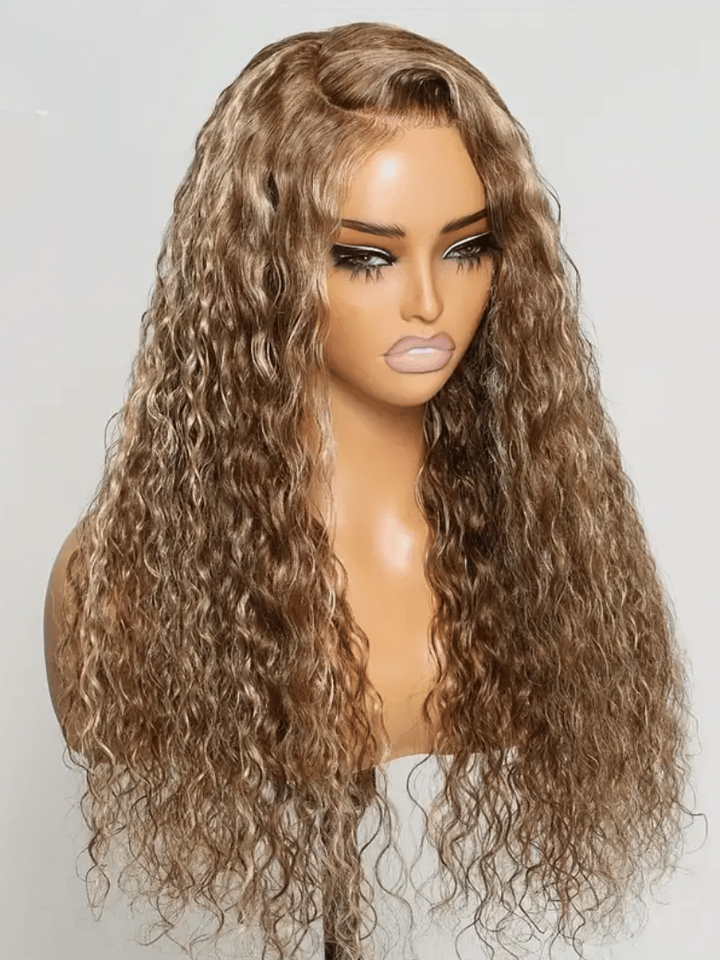 20 Inch 13x4 Pre-Everything Lace Frontal TL412 Honey Blonde Highlights Water Wave Wig