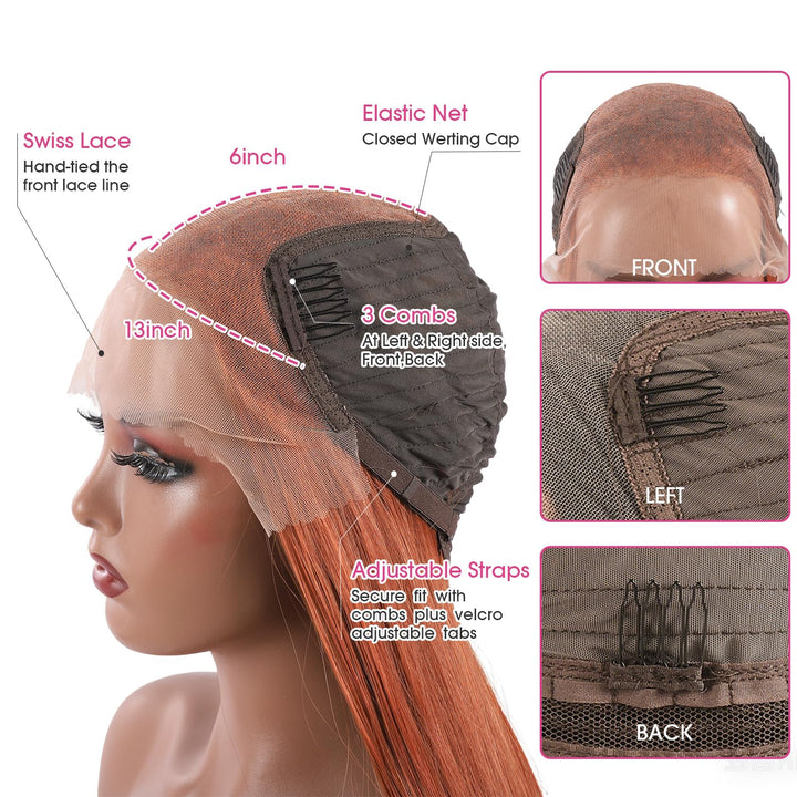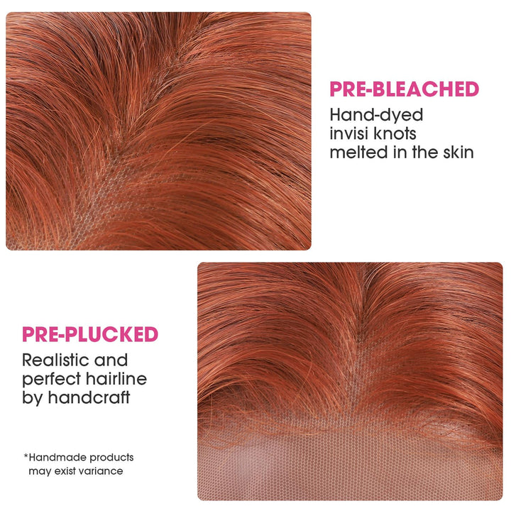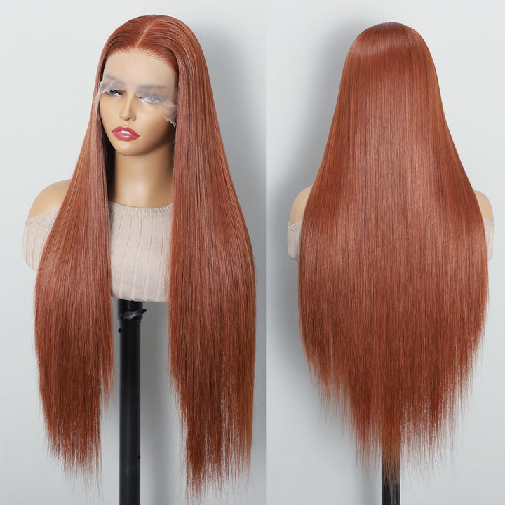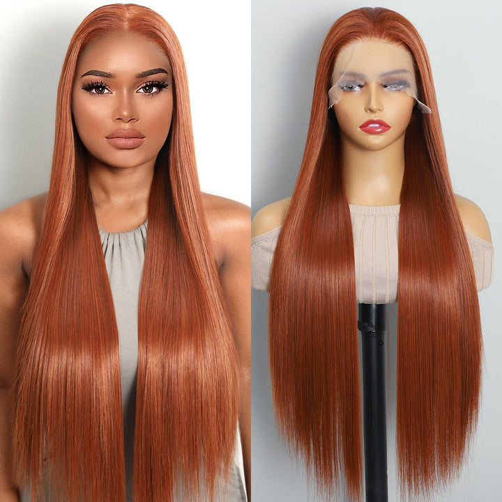 13x6 Lace Front Wigs,Glueless Synthetic HD Transparent Lace Wig,200% Density Straight with Baby Hair,Pre-Plucked Frontal Wigs for Women 30 Inch,Natural Hairline (Auburn)