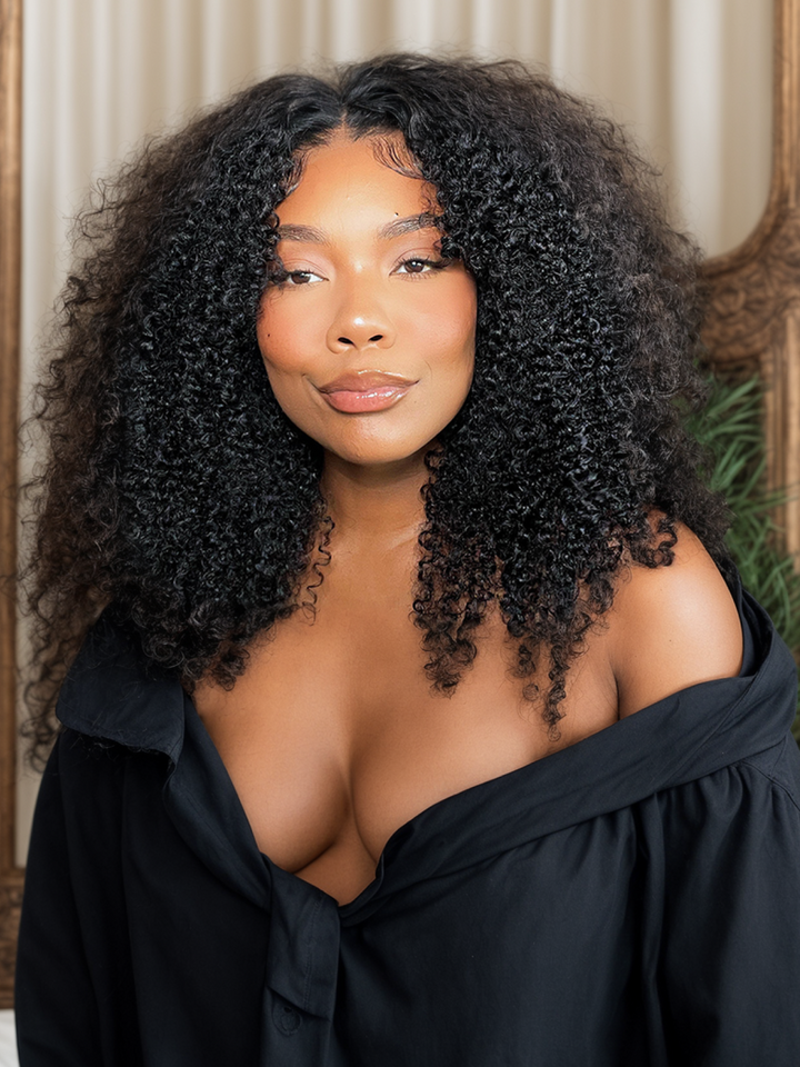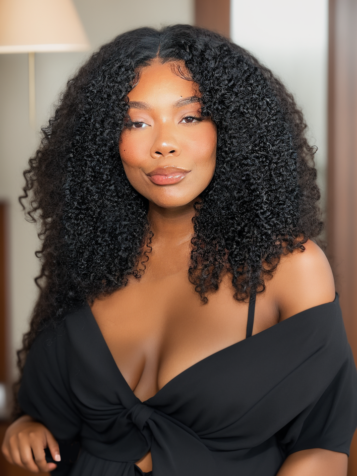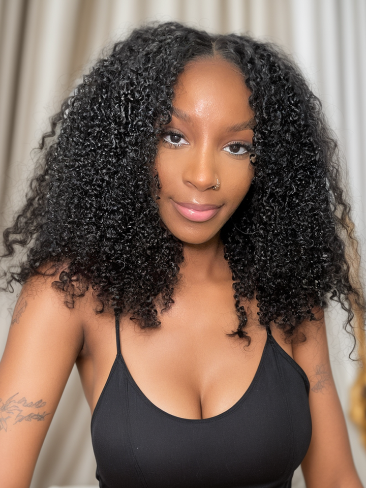18 Inch 150% Beginner Friendly V Part Kinky Curly Wig