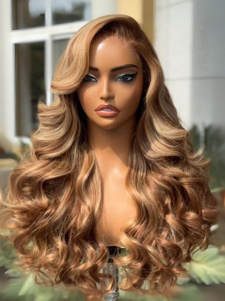 180% Density 7x5 Bye-Bye Knots Wig Pre-Cut Glueless Lace Honey Blonde Body Wave Wig With Bleached Clean Knots