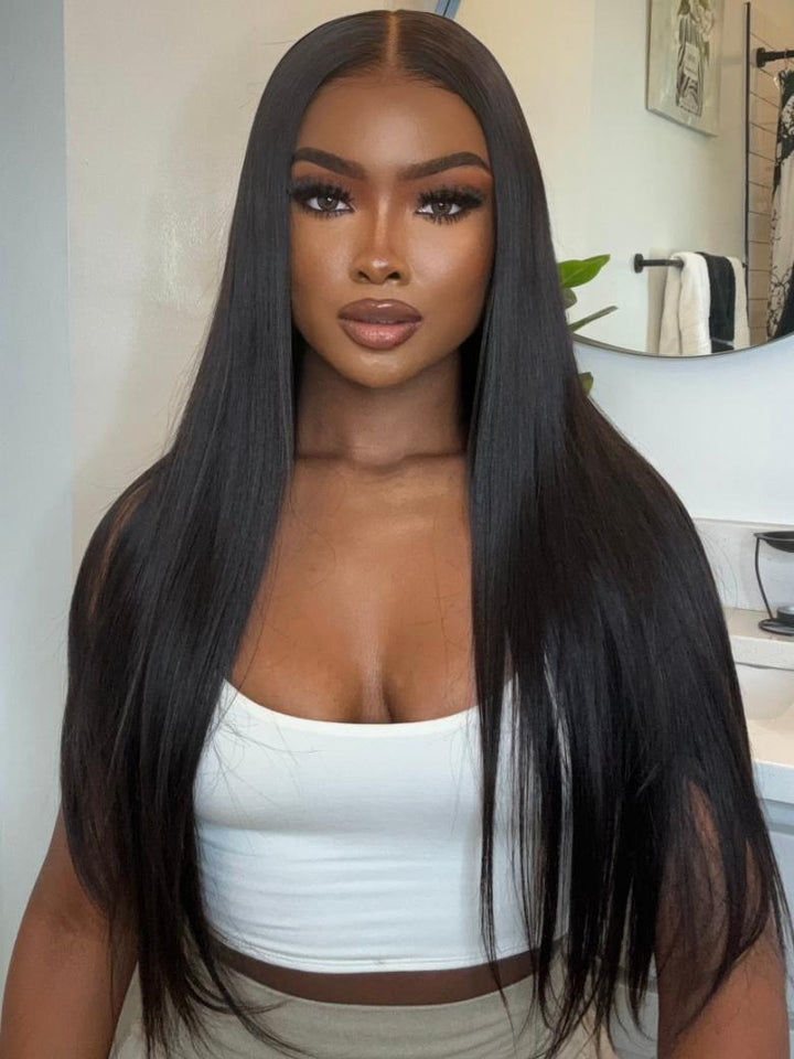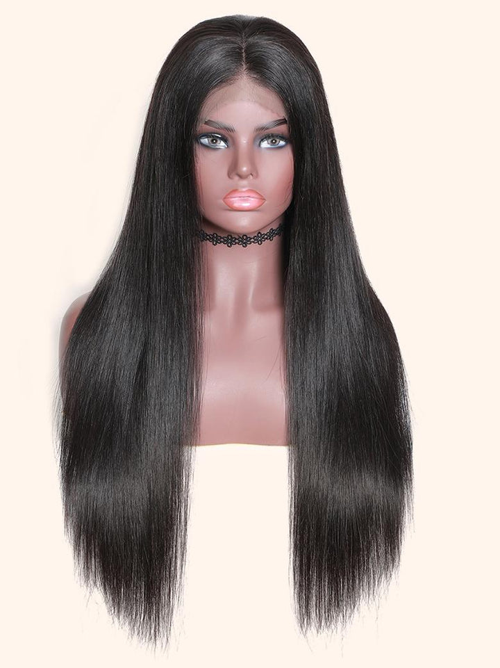 200% Density 13x4 Transparent Lace Frontal Black Straight 7x5 Bye Bye Knots Pre-Plucked Human Hair Wig
