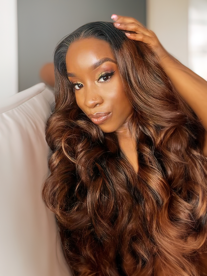 3Pcs #FB30 Brown Balayage Highlight Body Wave Human Hair Bundles