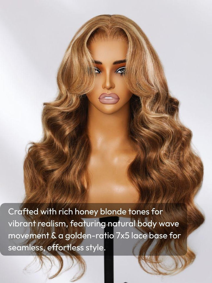 7x5 Bye-Bye Knots™ Wig Glueless Lace Honey Blonde Body Wave Drawstring Wig