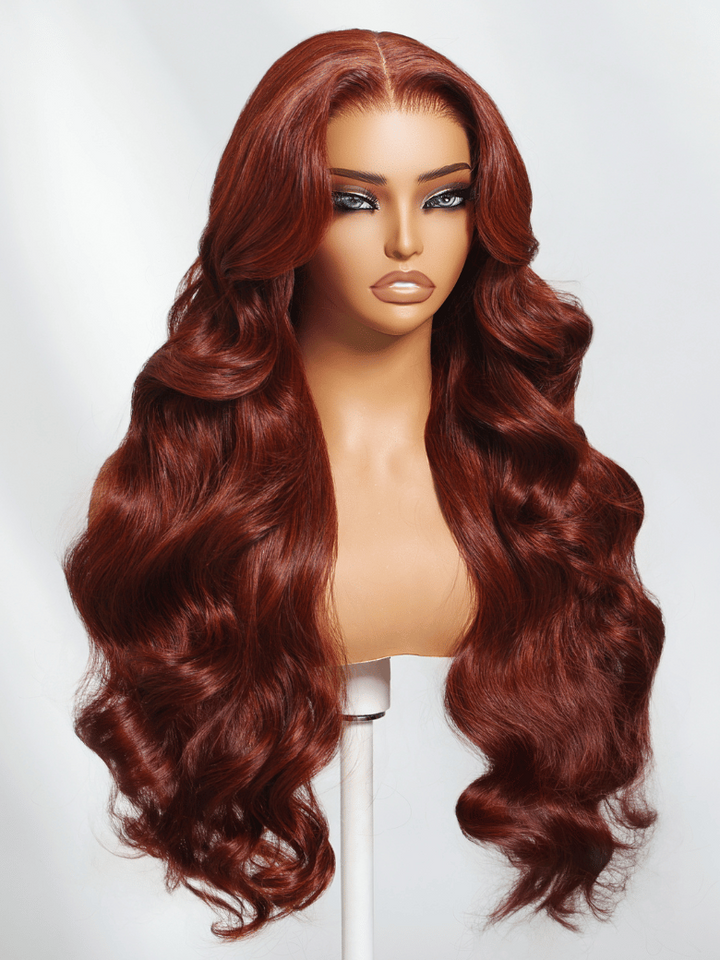 7x5 Bye Bye Knots Wig Glueless Lace Reddish Brown Bouncy Body Wave Bleached Knots Wig