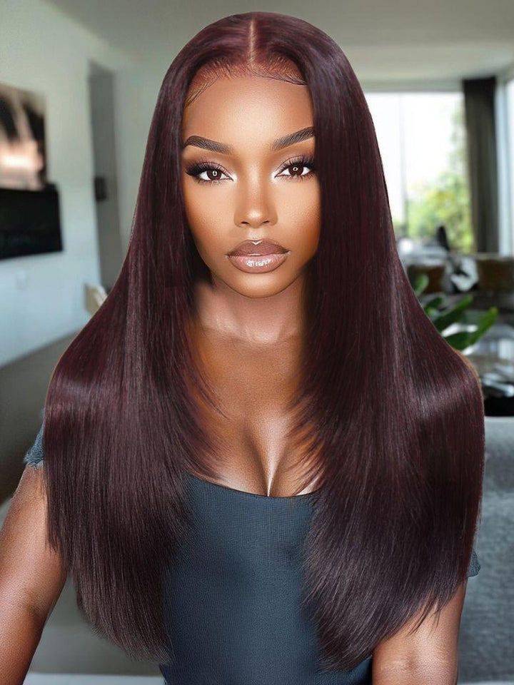 7x5 Byebye Knots Lace Black Cherry Layered Straight Hair Wig 150% Density