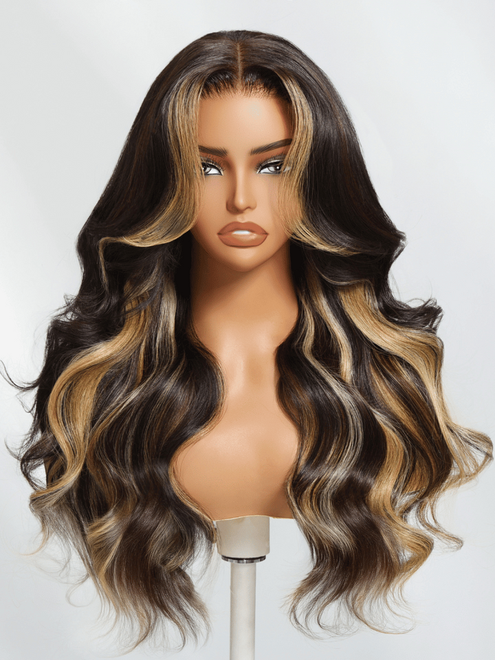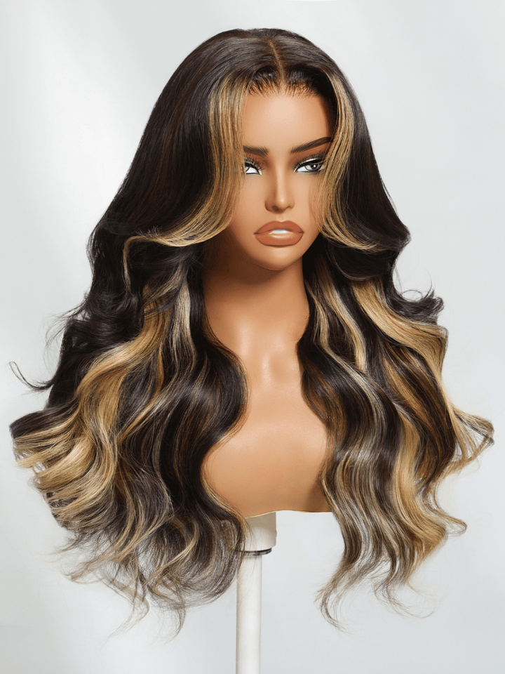 7x5 Lace Bye-Bye Knots Wig Loose Wave Butterscotch Highlights Brown Wig 150% Density
