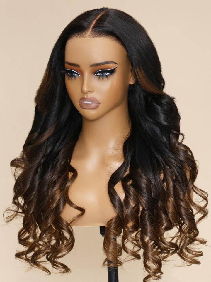 7X5 Magic Lace Long Length Wig Black to Chestnut Brown Ombre Body Wave