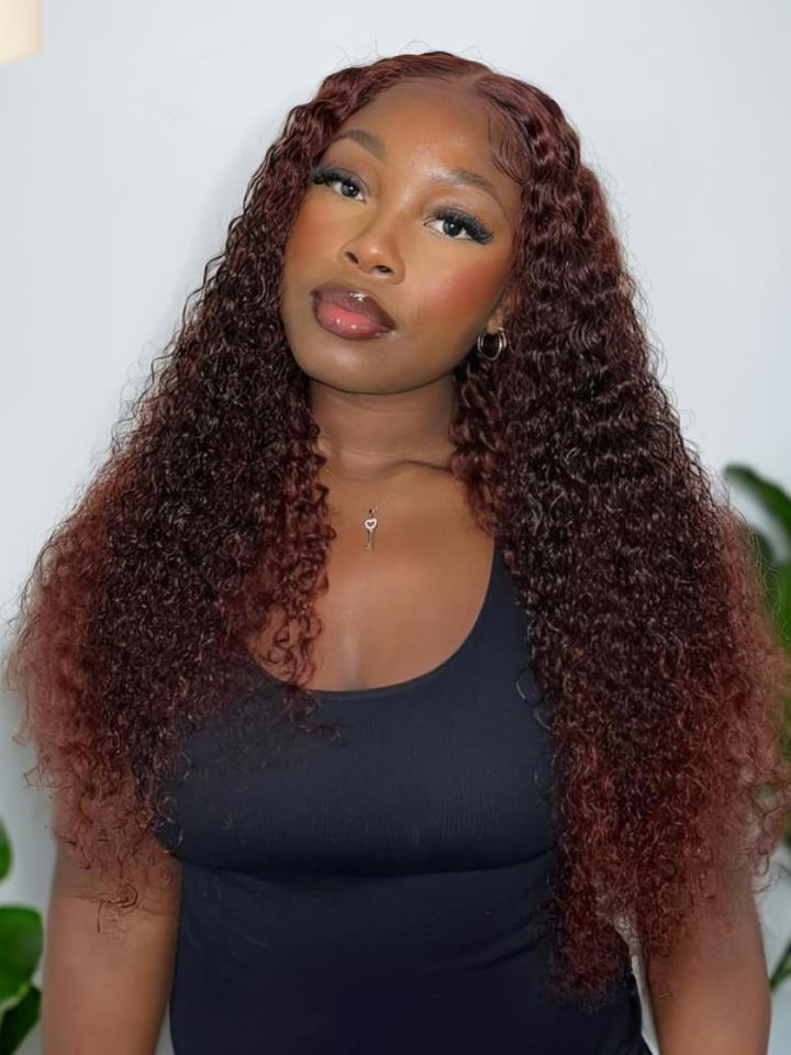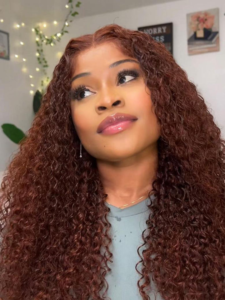 7x5 Glueless Lace Bye-Bye Knots Wig Reddish Brown Curly Wig With Bleached Knots 150% Density