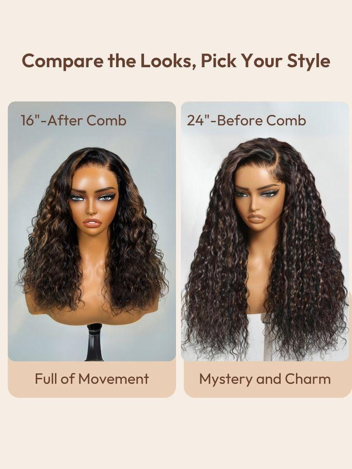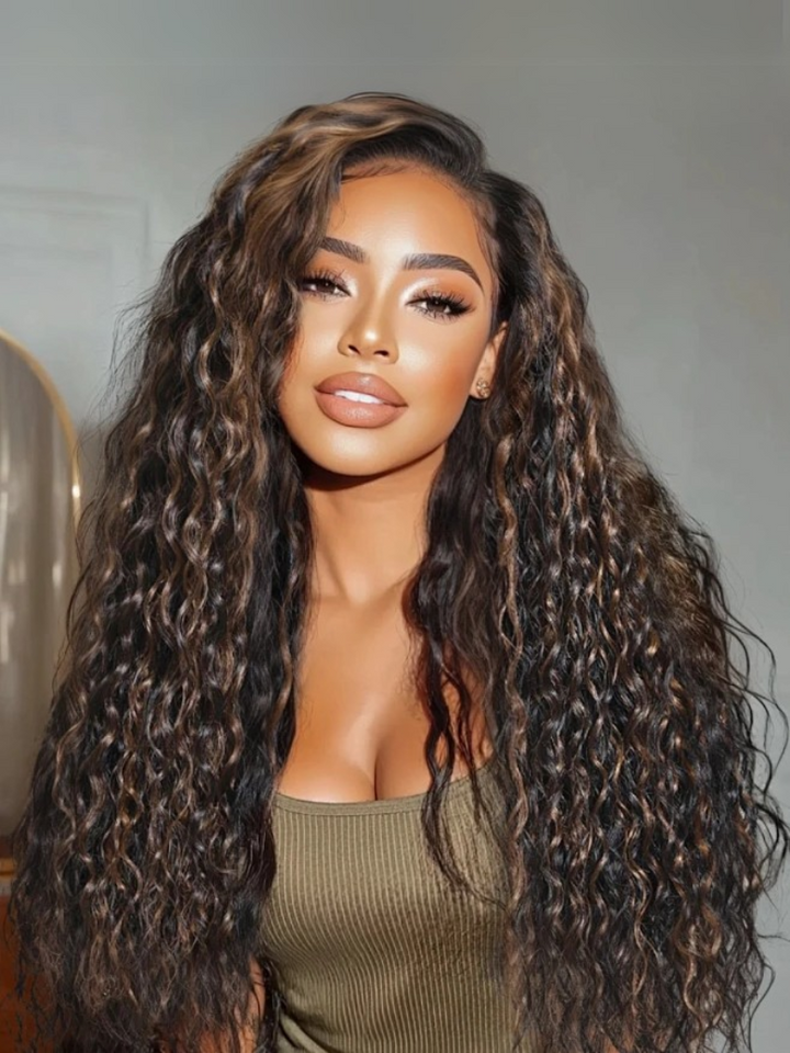 Black Wig With Golden Brown Highlights 7X5 Bye Bye Knots Wig Perfect Beach Look for Summer