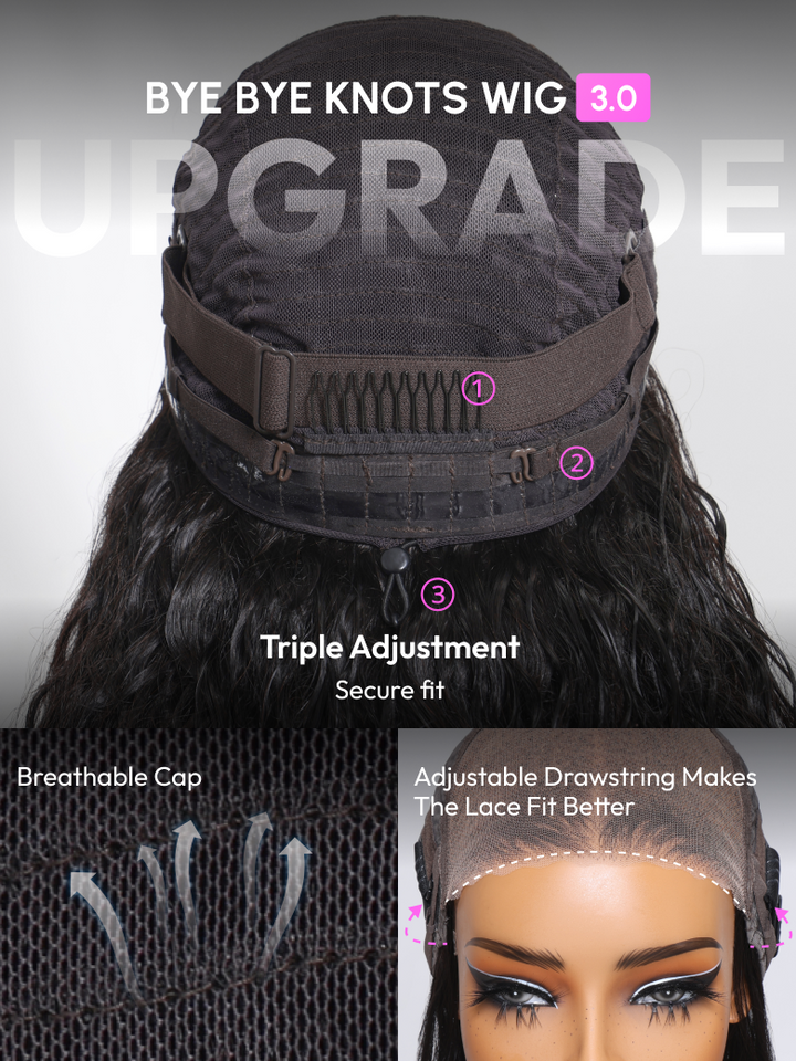 Bouncy Water Wave 7x5 Bye-Bye Knots Wig 7x5 Pre Cut Lace Flexible Cap Size Drawstring Wig