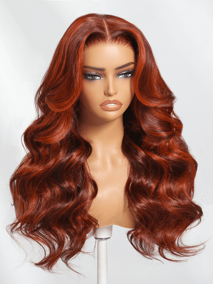Bye-Bye Knots 7x5 Lace Loose Wave Red Orange Highlights Wig with Face Framing Layers
