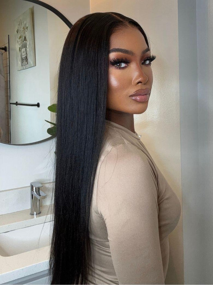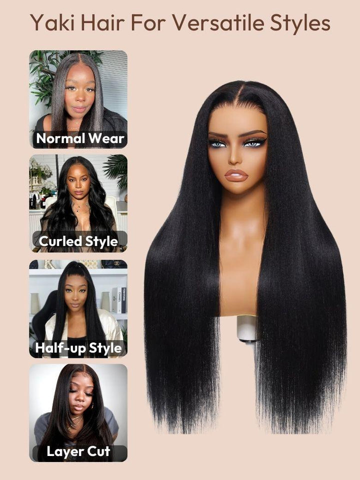 Bye Bye Knots™ Wig 7x5 Glueless Lace Black Yaki Straight Wig With Elastic Drawstring 360 Cozy Hug