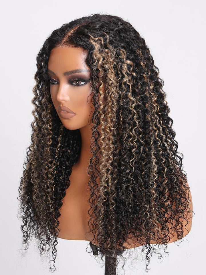 Bye Bye Knots Wig 7x5 Glueless Lace Honey Brown Highlights Jerry Curly Wig With Bleached Knots 150% Density