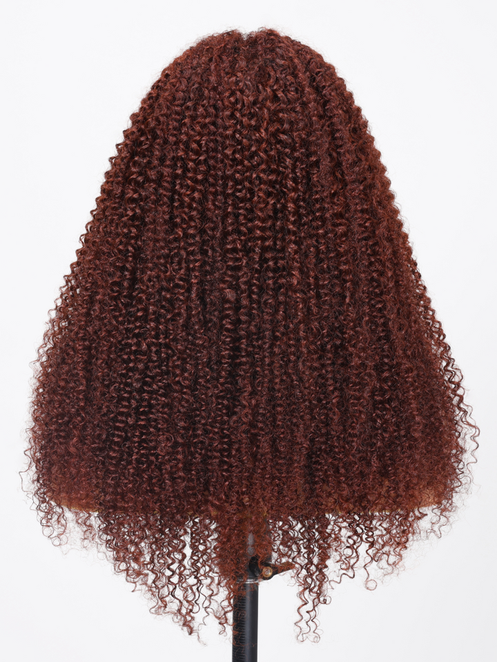 Bye Bye Knots Wig 7x5 Glueless Lace Reddish Brown Kinky Curly Bleached Knots Wig 150% Density