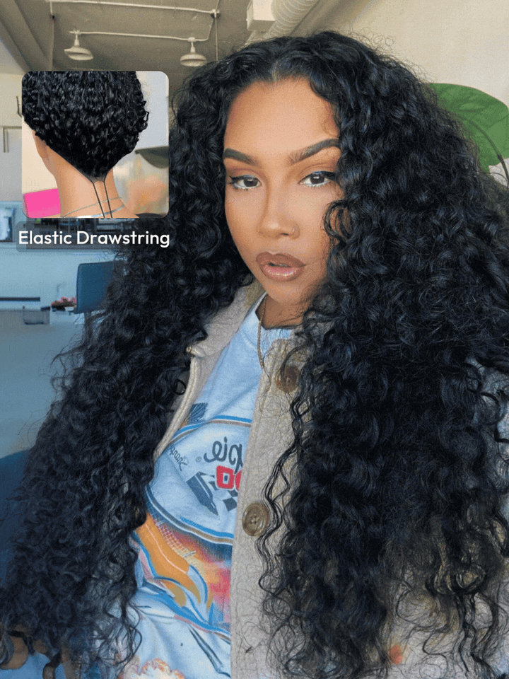 Byebye Knots Wig 7x5 Pre Cut Lace Water Wave Flexible Cap Size Drawstring Wig