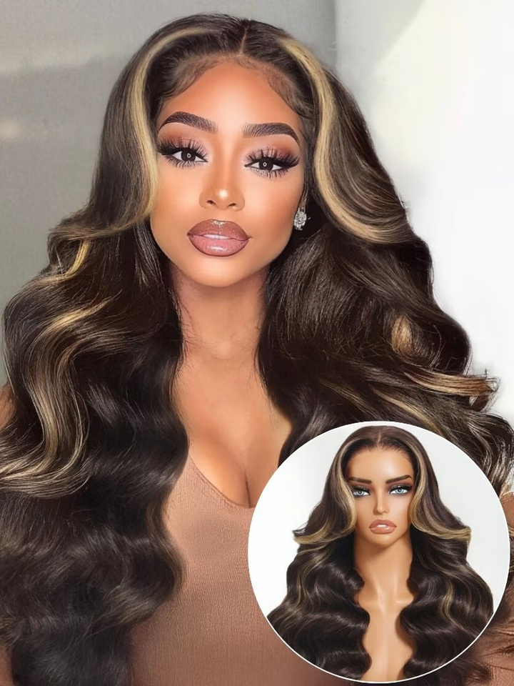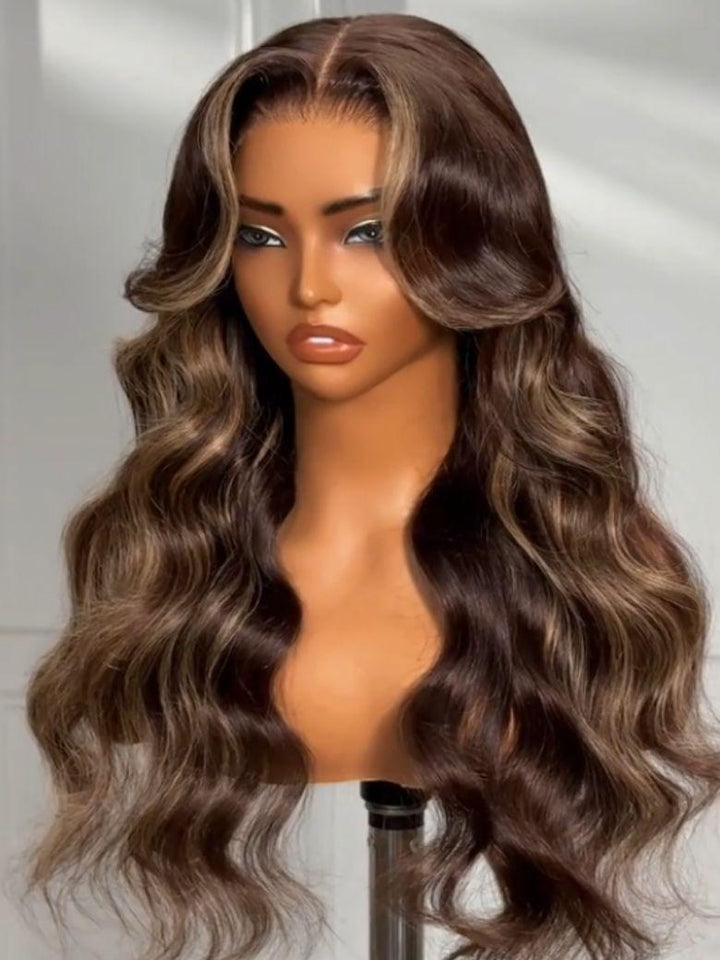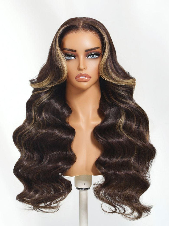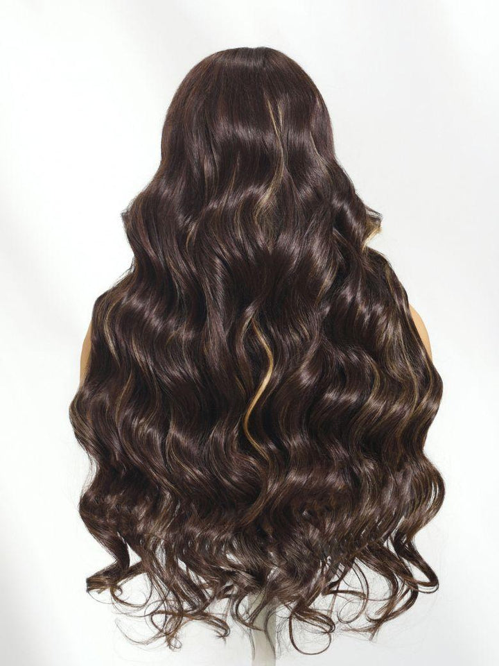 Chocolate Brown With Highlights Loose Wave Wig 7X5 Bye-bye knots With Face Framing Layers Member Only