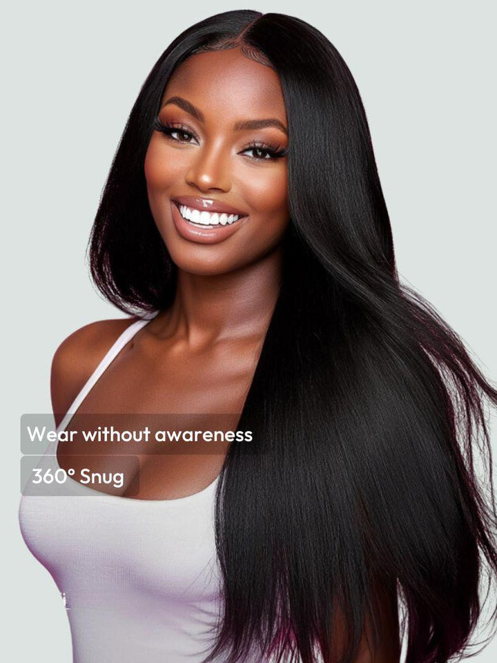 EasiContour™ V Part Glueless Yaki Straight Wig With Invisi Drawstring 100% Human Hair 150% Density