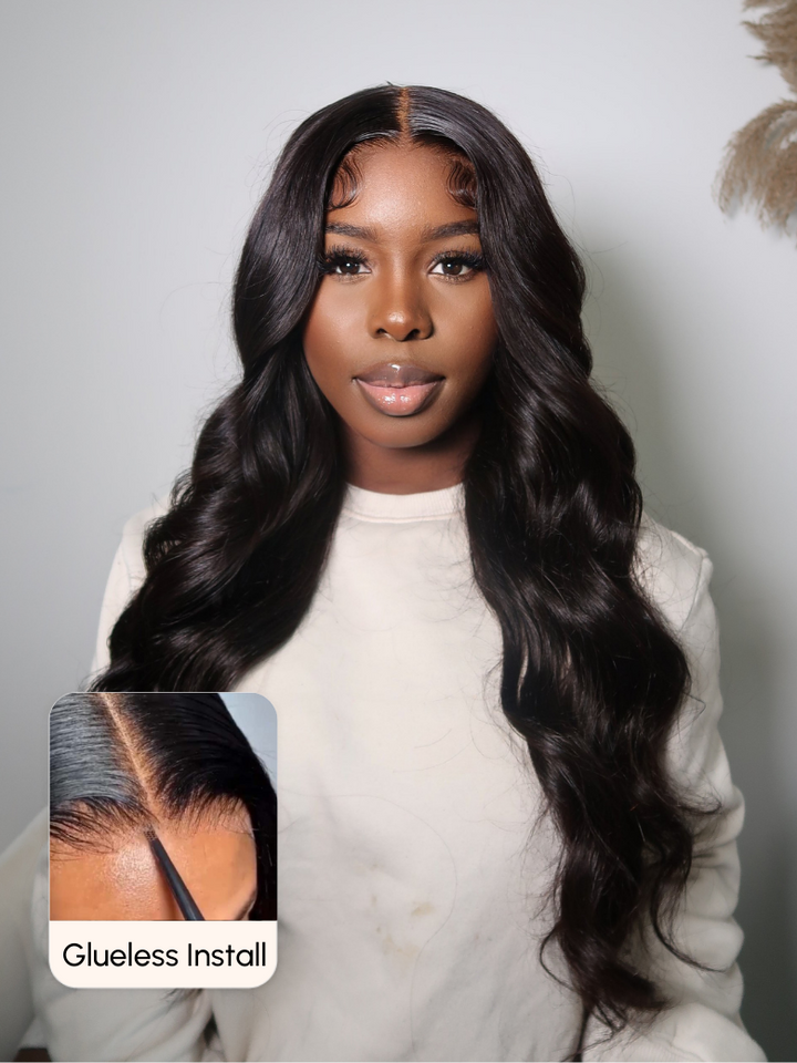 [From 34"] Glueless HD Lace 180% Density 5x5 Lace Closure Body Wave Wig With Baby Hair Pre-plucked and Pre-bleached