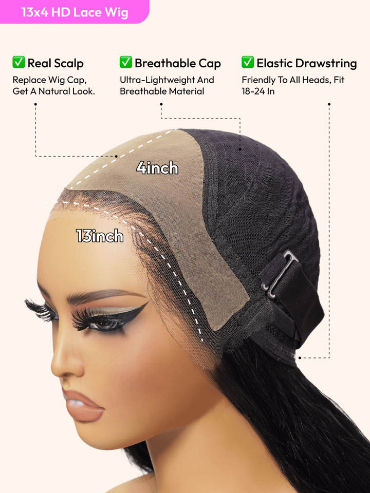 HD Bye-Bye Cap™ Wig 13x4 Invisible Glueless Lace Frontal Body Wave Black Wig