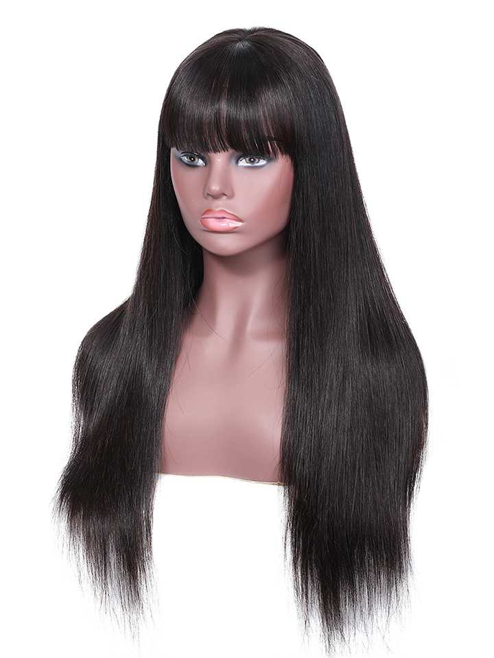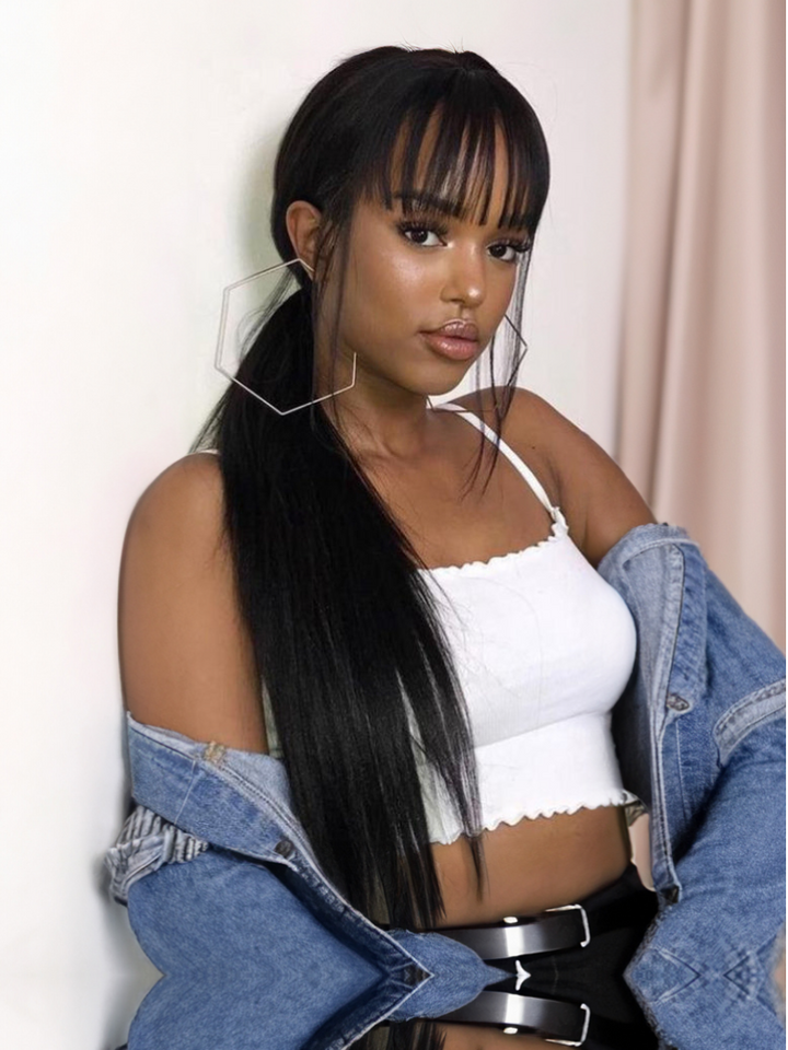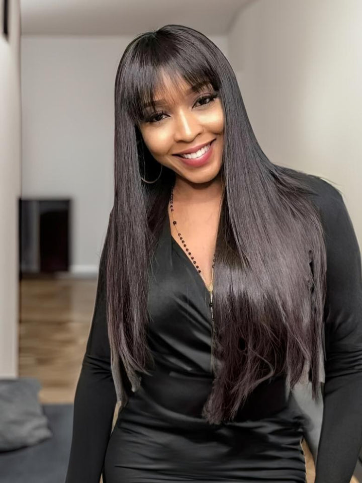 13x4 Transparent Lace Frontal Straight Hair With Bangs Pre Plucked Human Hair Wig