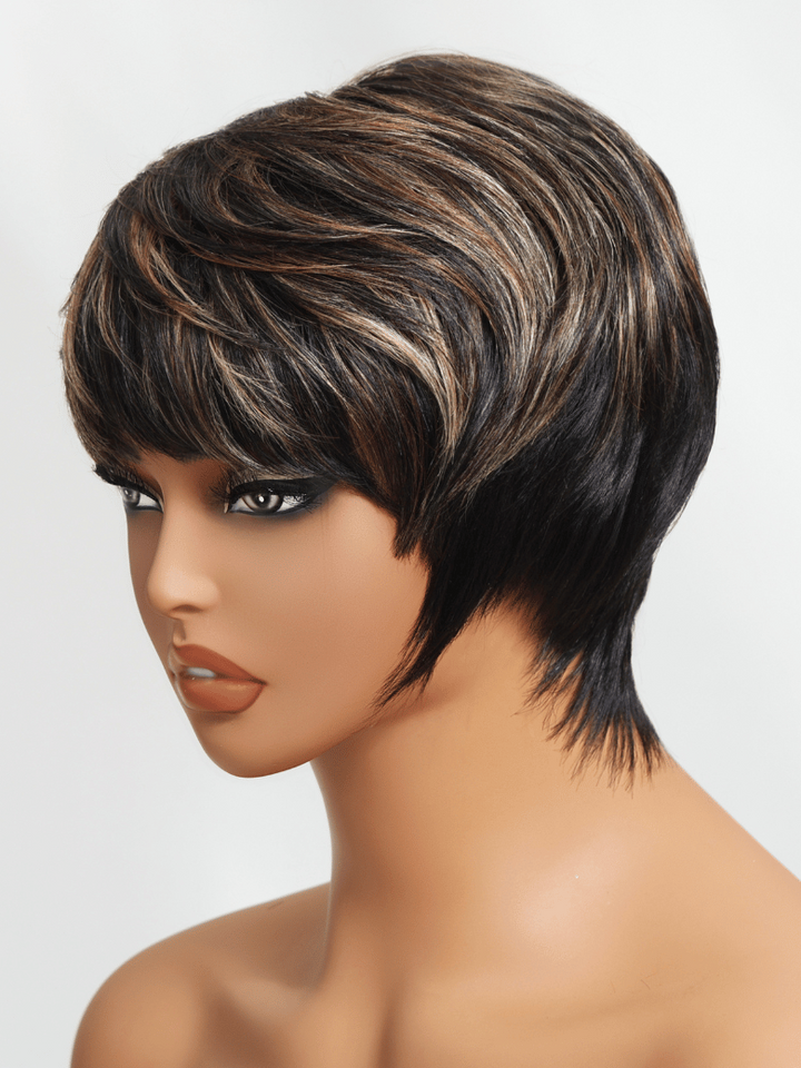 Light Brown Highlights Short Pixie Cut Human Hair Glueless Wig