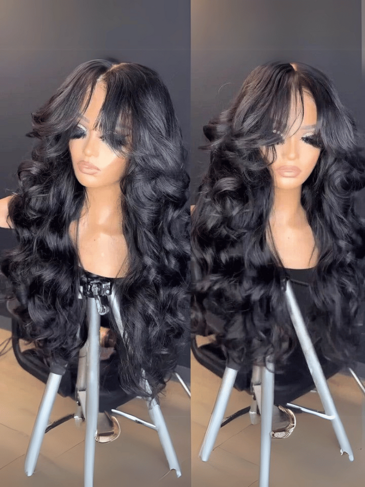 [Hottest New Arrival]UNice 13x4 Pre-Everything Lace Frontal Black Fluffy Natural Loose Wave Curtain Bangs Wig