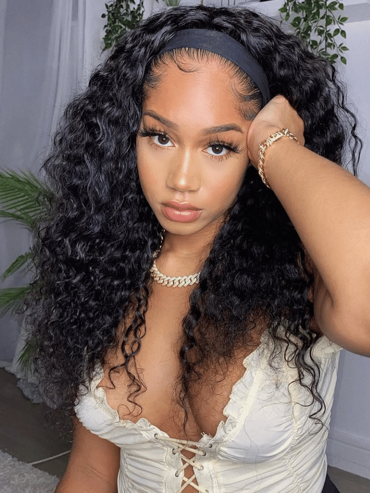 Low Maintenance Put On And Go Water Wave Human Hair Headband Glueless Wig