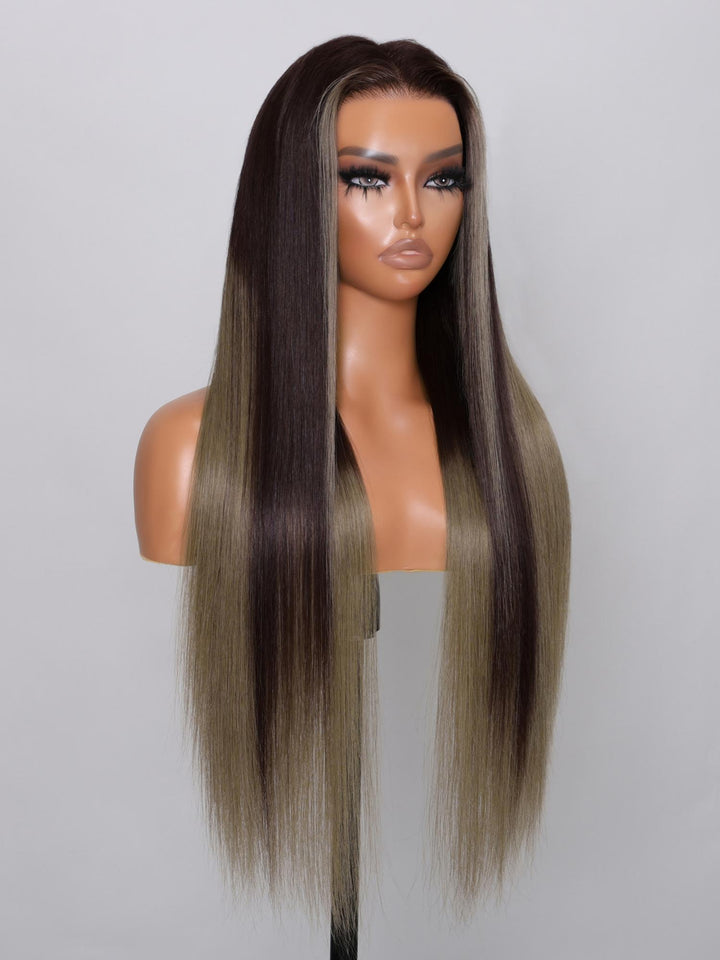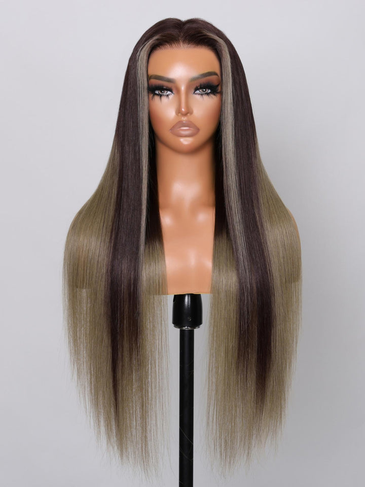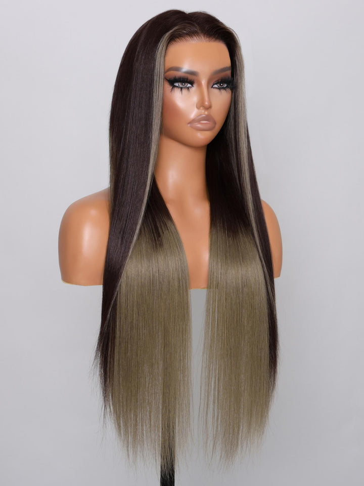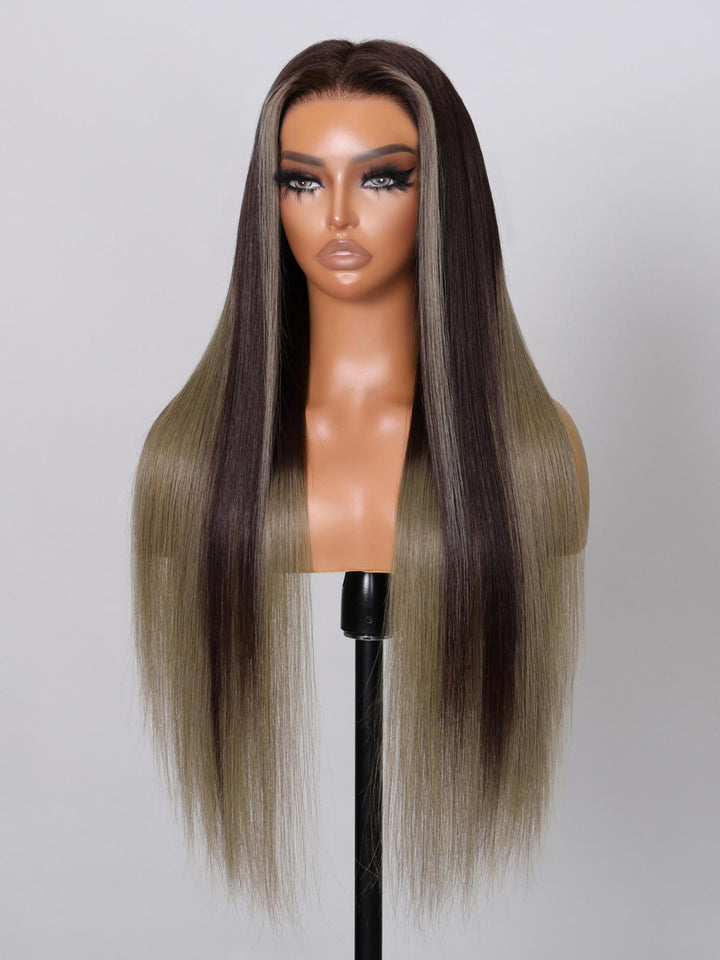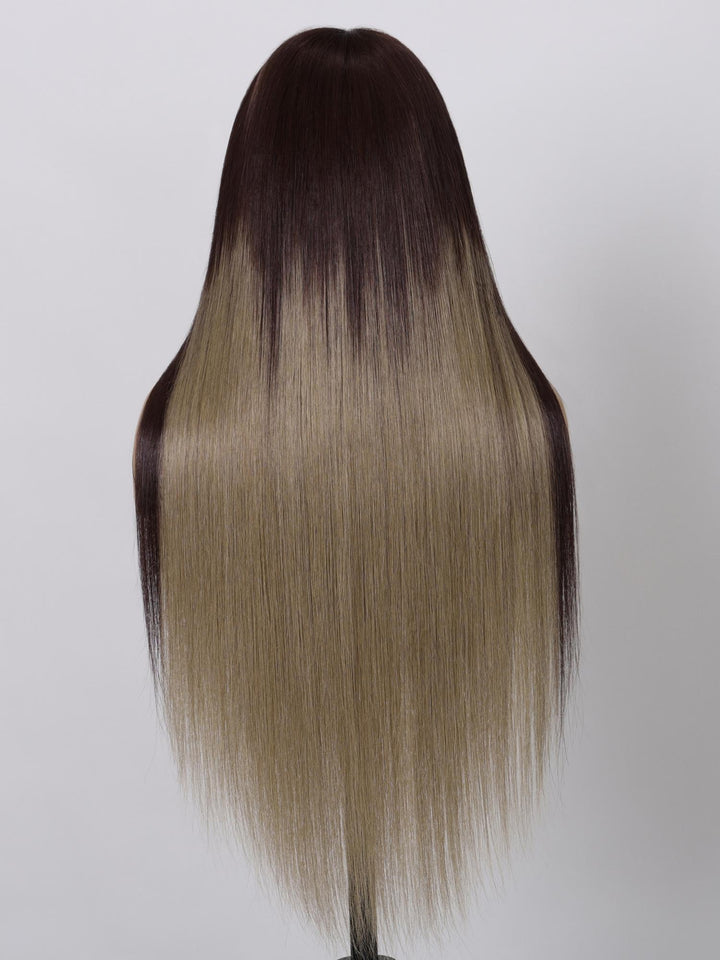 24 Inch 13x4 Lace Front Ash Purple Ombre Straight Human Hair Wig