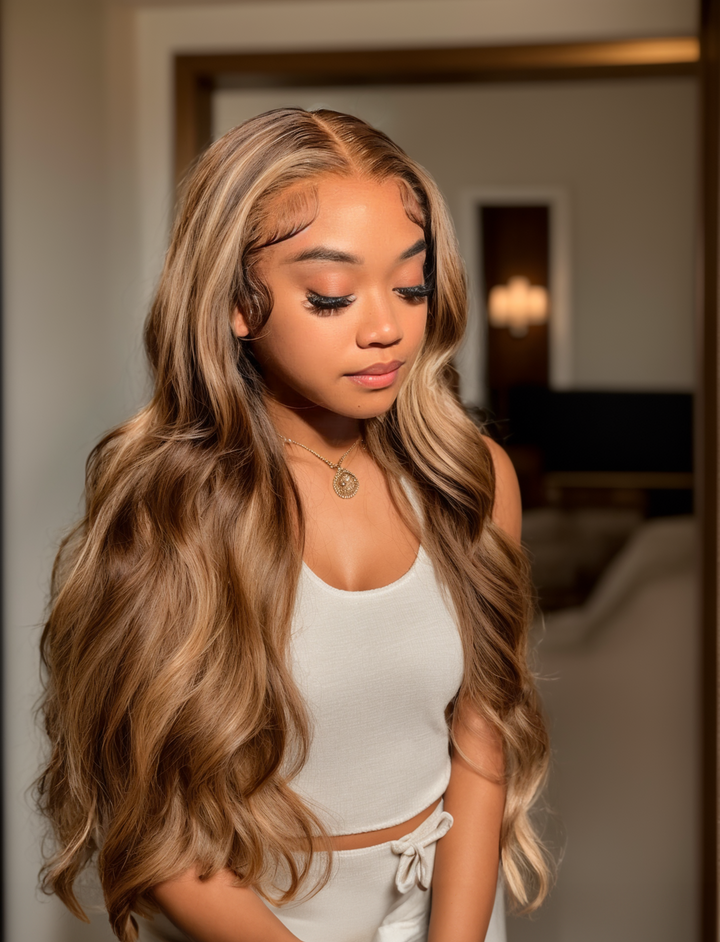 200% Density 6x4.5 Pre Cut Lace Body Wave Lace Wig Glueless Honey Blonde Put On And Go Wig