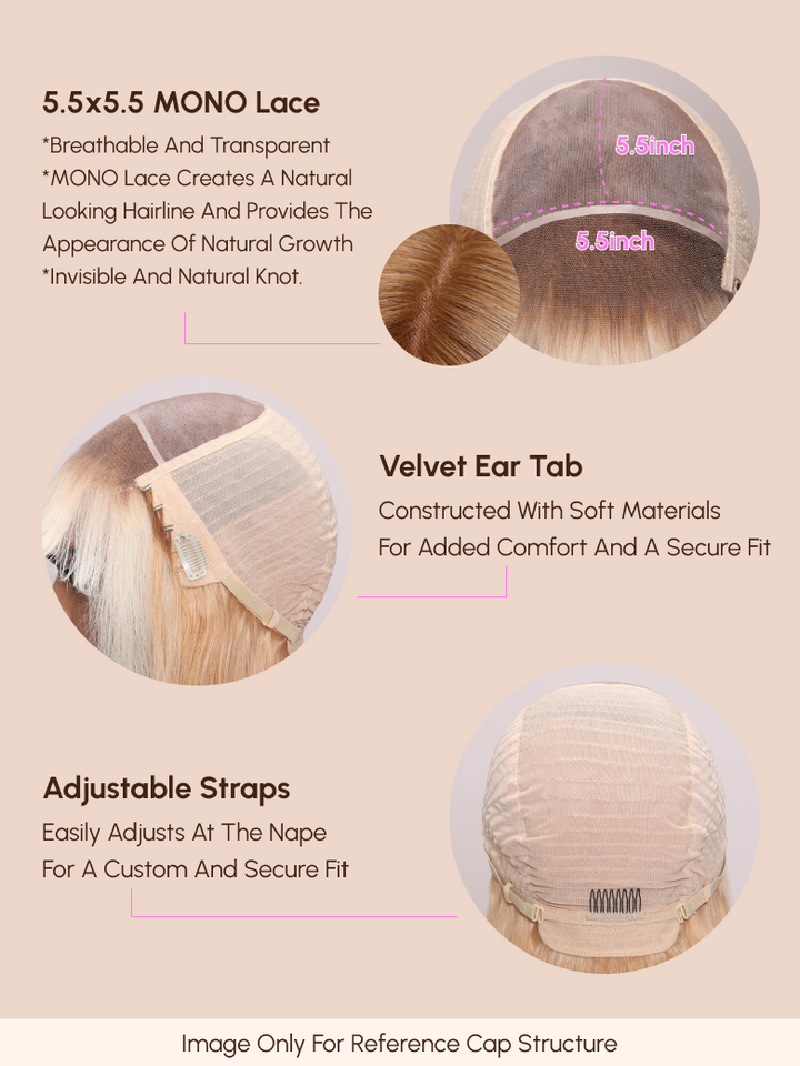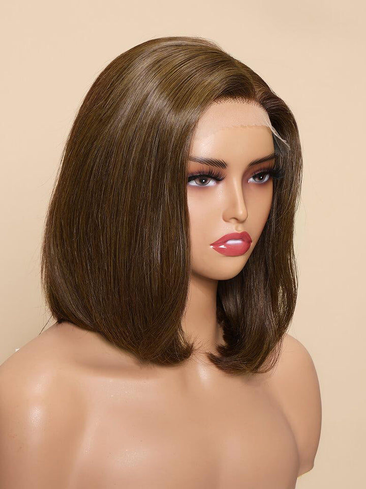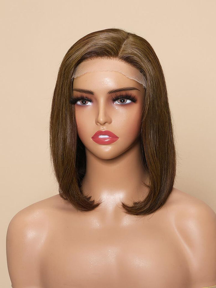 NOA-12" MONO & SWISS LACE STRAIGHT HUMAN HAIR WIG